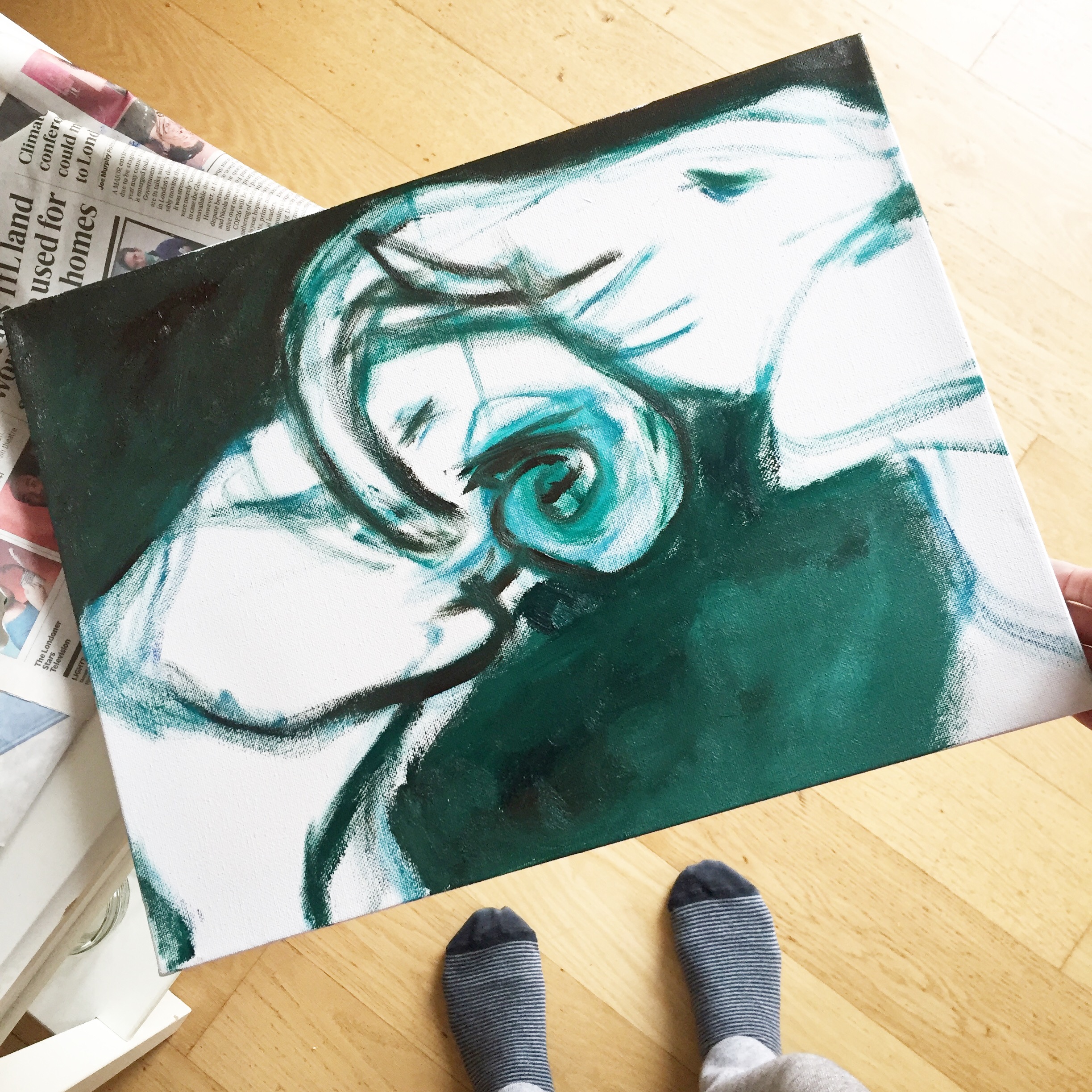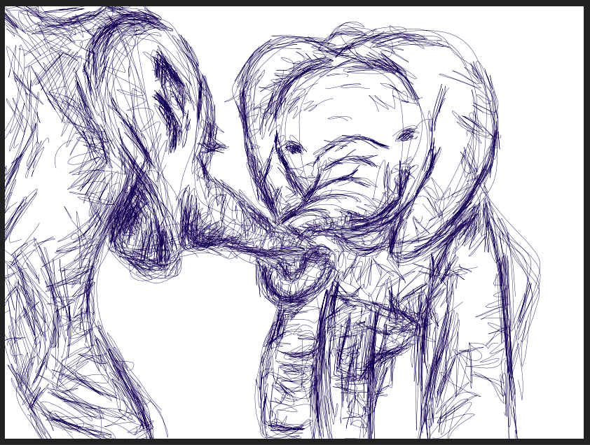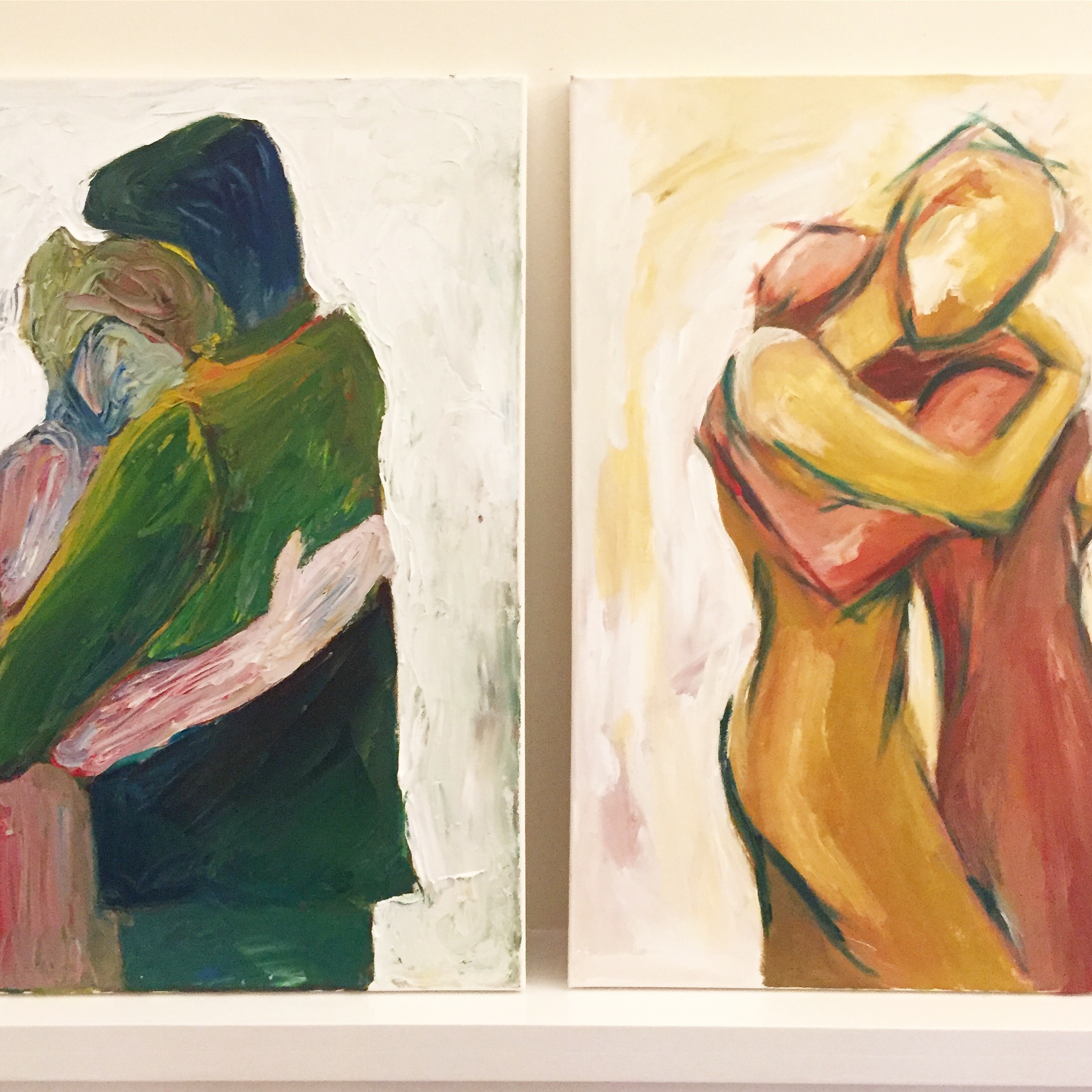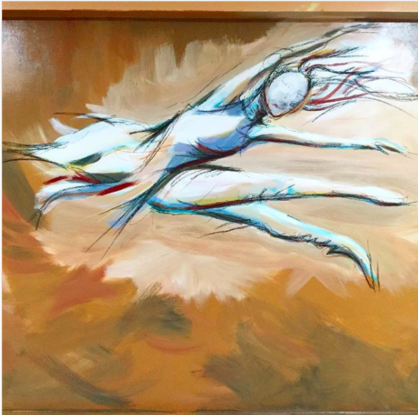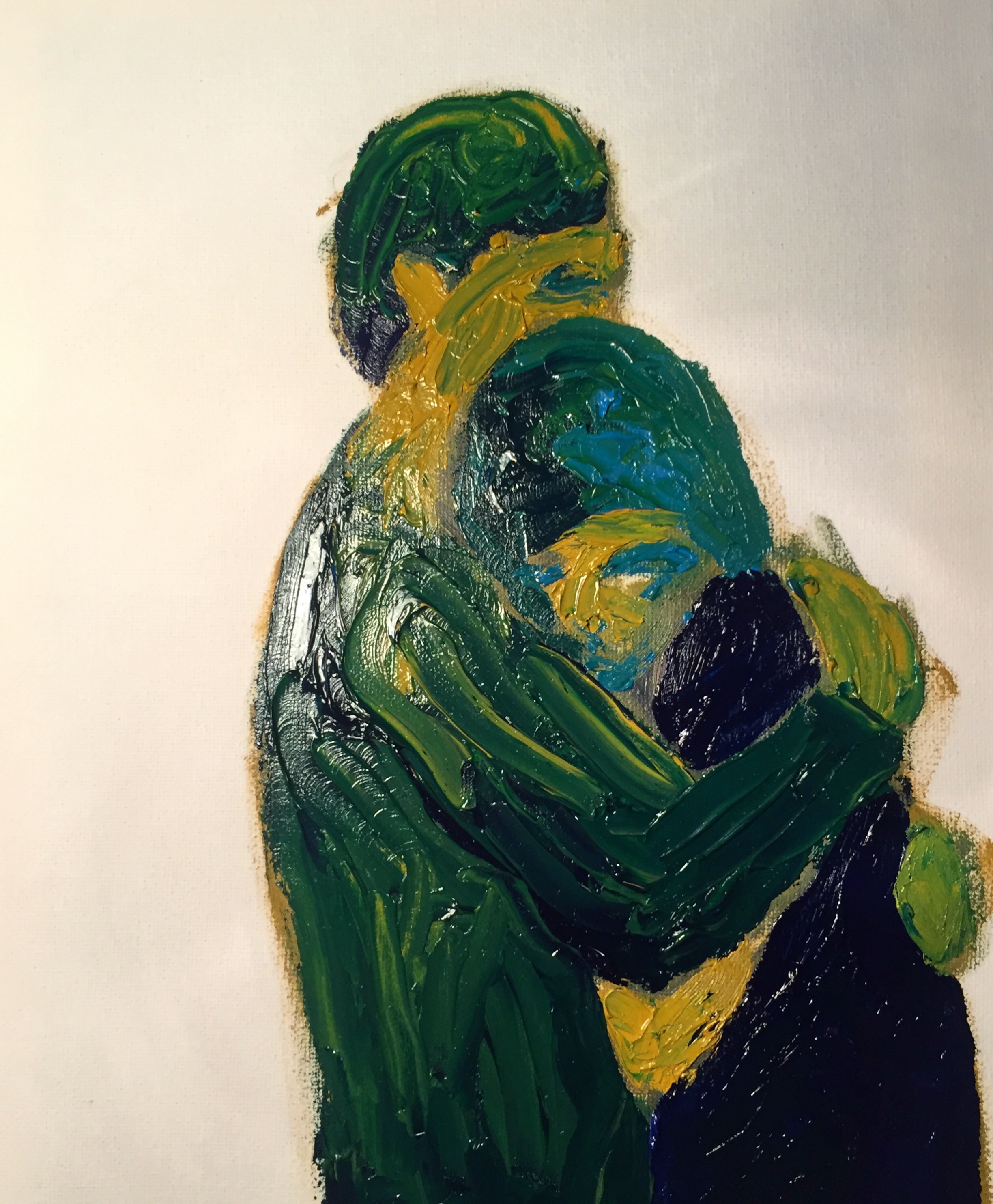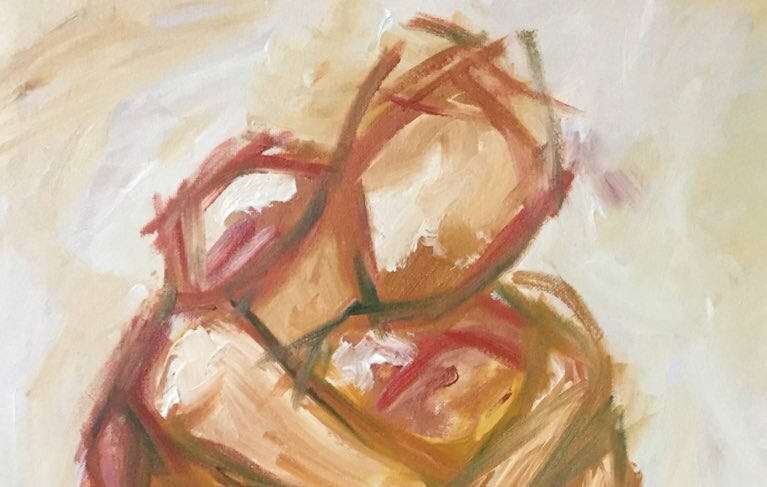 I love to paint and draw bodies in motion, people embracing, portraits of age, elephants, and nature. My writing and my poetry are woven and sewn like threads into my visual work.
