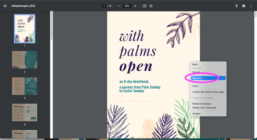Step 3: Click on the icon in the corner to save the file to your device. Or right click anywhere in the file and click ‘SAVE AS’